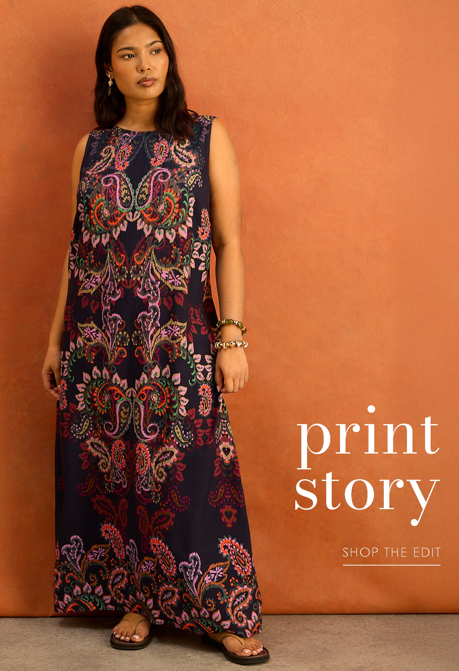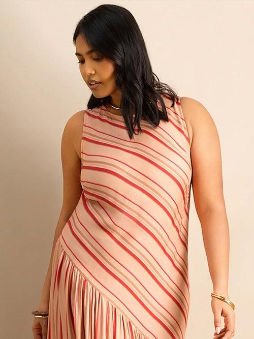 "This is a very flattering dress for a curvy girl. It hangs really well from beneath the bust, hiding any lumps or bumps! Lovely jersey feel to the fabric."