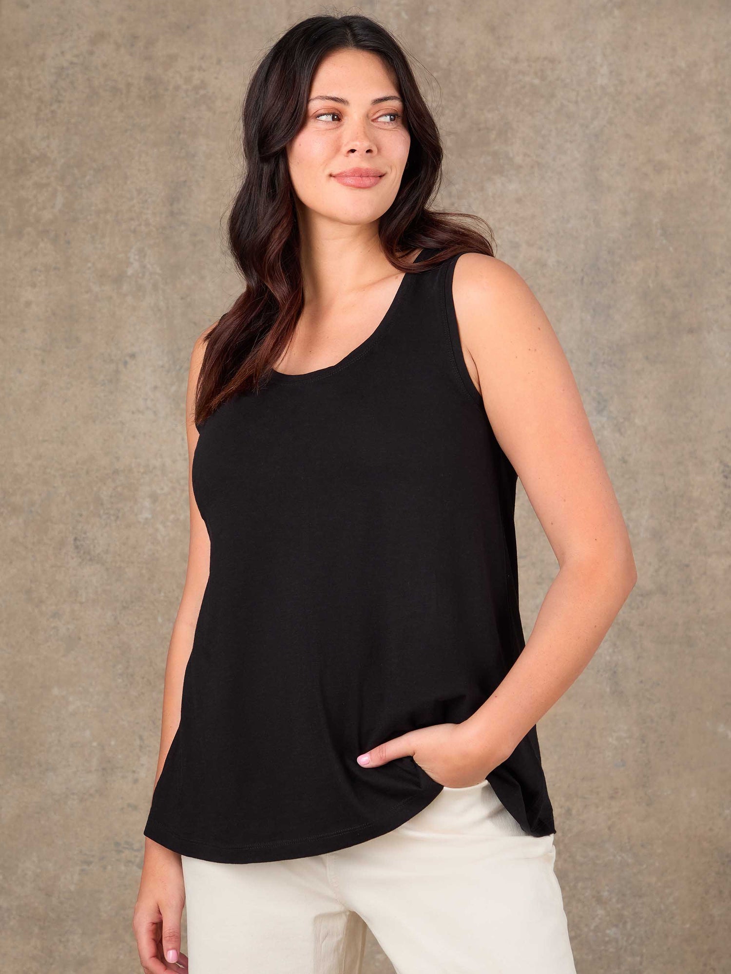 A simple essential you’ll reach for again and again, this black cotton slub vest is designed with a clean scoop neckline and an easy, comfortable fit. Crafted from 100% cotton slub jersey, it feels soft and breathable against the skin while offering just the right amount of coverage. The sleeveless cut makes it ideal for layering or wearing on its own, finished in a timeless black that works effortlessly with every wardrobe.