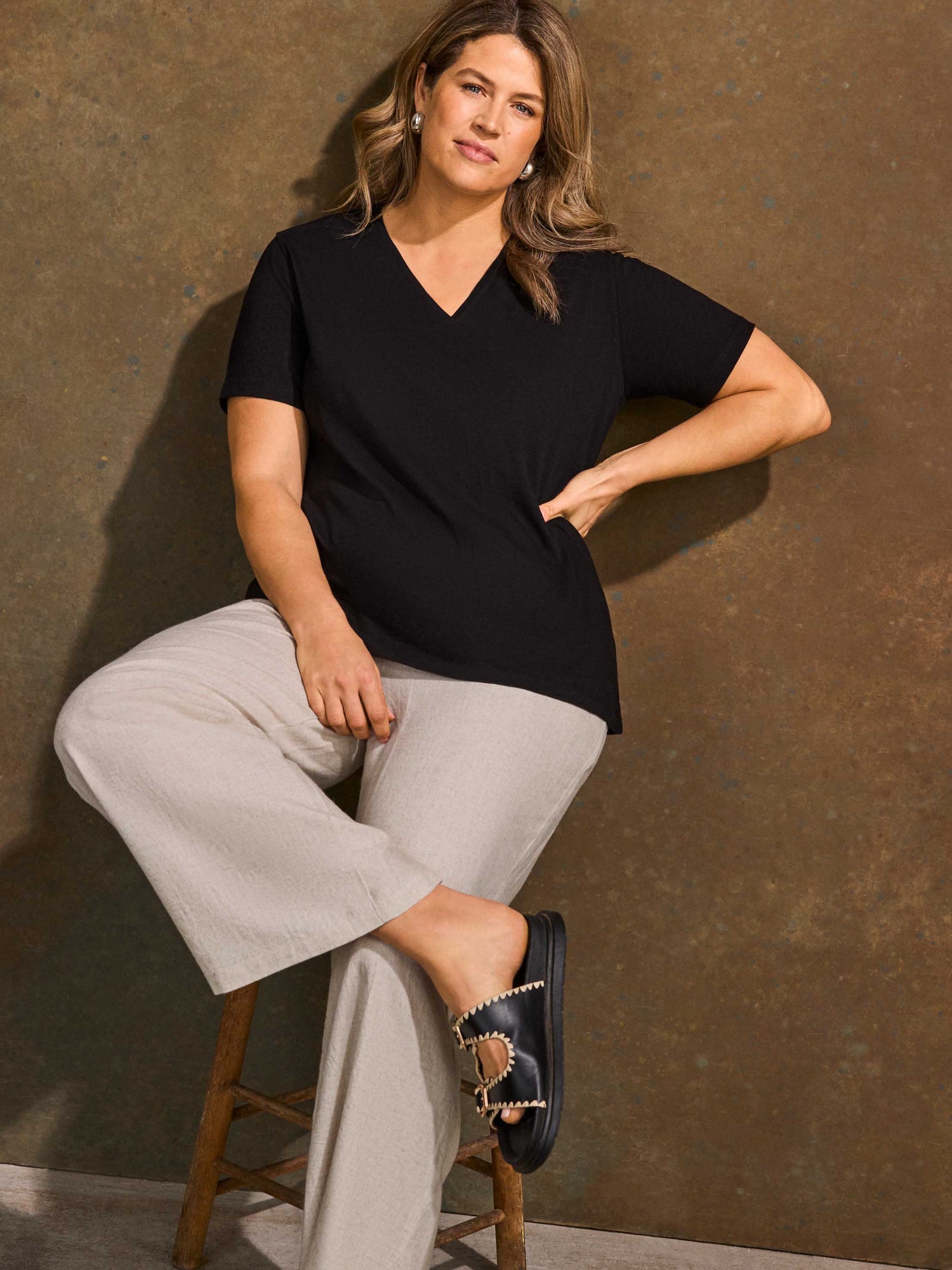A refined update on our best-selling favourite, this black cotton slub V-neck T-shirt is designed to fit and flatter. Cut with a soft V-neckline and relaxed short sleeves, it offers an easy drape through the body without feeling oversized. Crafted from breathable 100% cotton slub jersey, it feels light and comfortable while holding its shape. A essential everyday staple that works just as well layered or worn on its own.