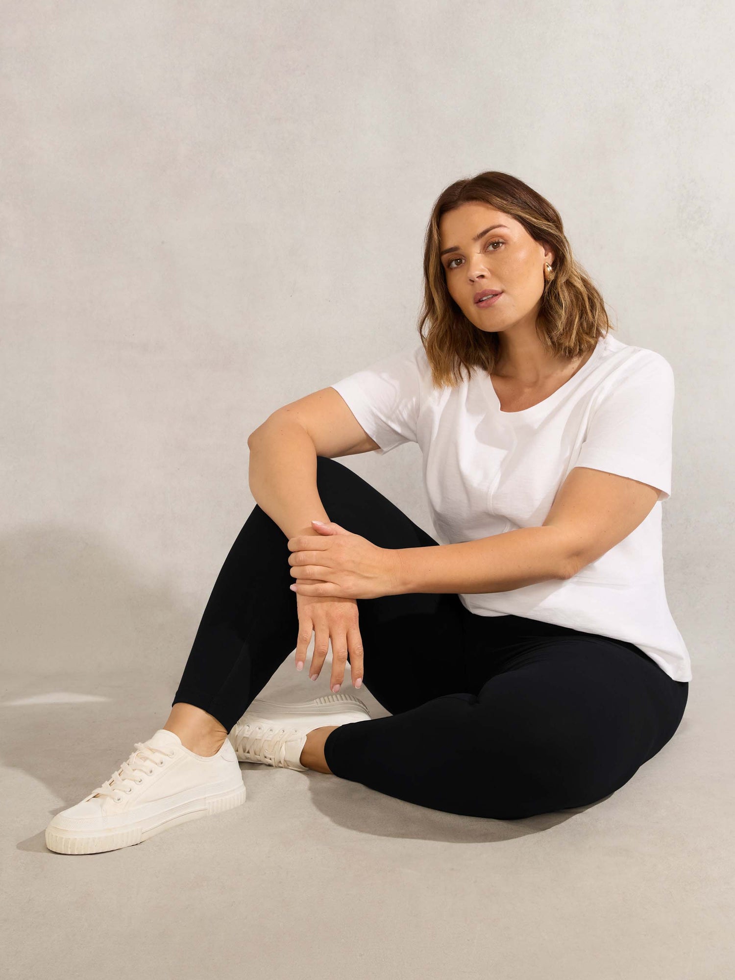 These are for me great - the material is soft with stretch, still soft after washing, comfortable to wear and keep their shape, the fit in both petite and regular is just right, have bought both the petite and regular legging so that I get a choice of leg lengths. I like them so much have got two pairs of each. I really like that they have a “normal” width comfortable waistband and not the high rise waistband that a well known store seems only to do. I really wish that you would consider these leggings in navy blue, I certainly would buy them.