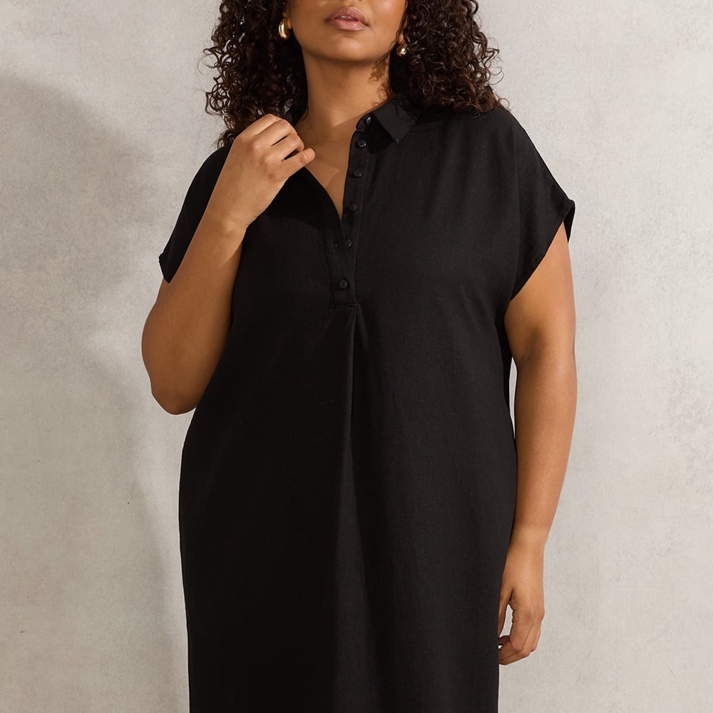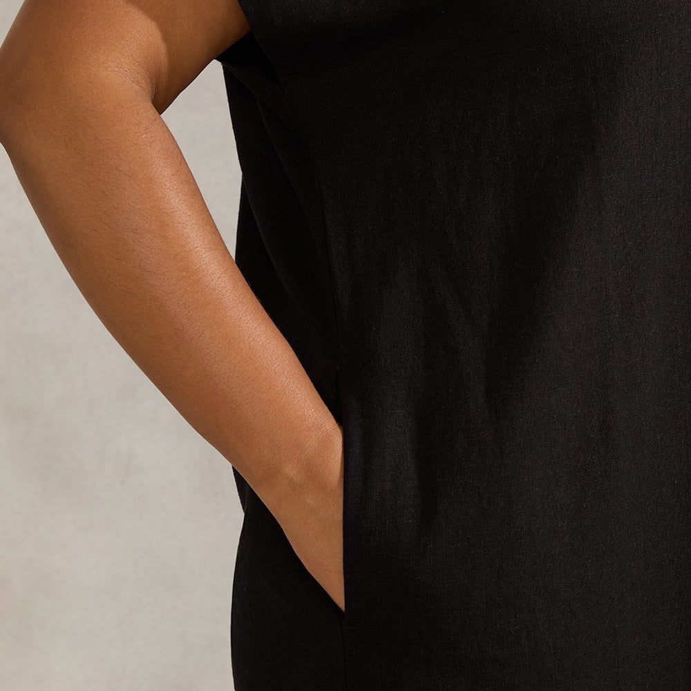 Great linen dress. Bought for event at work which was on a hot day so it worked really well. Fits lovely and so far hasn’t creased too badly. Made me feel good. I’m 5ft 3/4 in and it was a good length. Was a bit worried about the slits but I actually got used to them.