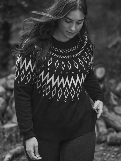 Shimmer in style with this Black Sparkle Jumper, crafted from sparkle yarn for a subtle, eye-catching finish. Featuring a classic crew neckline, 3/4 length sleeves, and ribbed trims at the neckline, cuffs, and hem, it combines comfort and festive flair for effortless seasonal dressing.