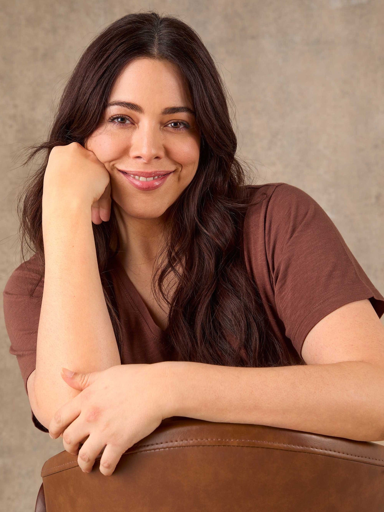 A rich brown update to a best-selling style, this cotton slub V-neck T-shirt brings warmth and depth to everyday dressing. The soft V-neckline and relaxed short sleeves create a flattering, easy shape that sits comfortably through the body. Crafted from breathable 100% cotton slub jersey, it offers a naturally textured finish with a polished feel. An effortless essential that pairs beautifully with neutrals, denim, and tailored layers.