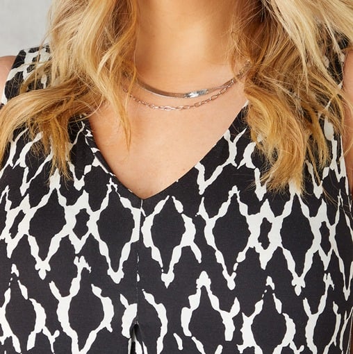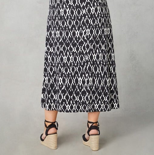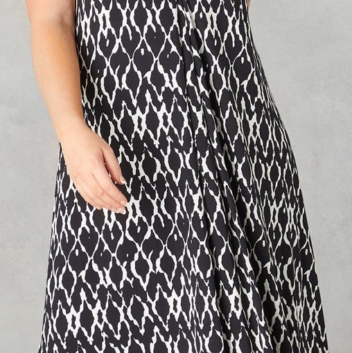 A really good dress in plus size. Good fabric which drapes well. V neck is always flattering. Very happy.