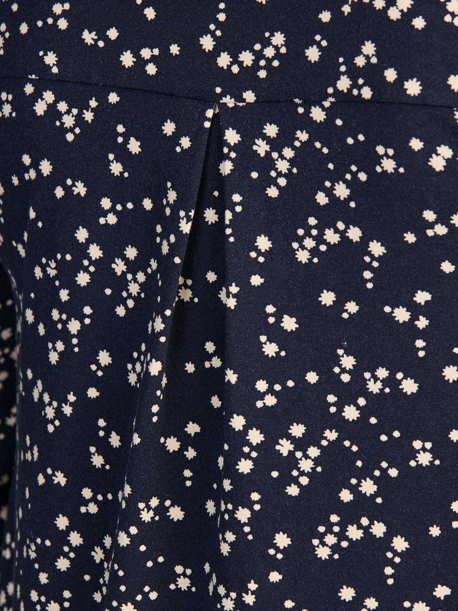 Effortlessly stylish, this navy ditsy print tunic blends feminine tailoring with relaxed comfort. Featuring a Nehru collar with V-neckline, blouson sleeves with shirred cuffs, and a tunic-length slip-on design, it offers an easy, versatile fit. Perfect layered over trousers, leggings, or jeans, it creates chic, everyday outfits with minimal effort.