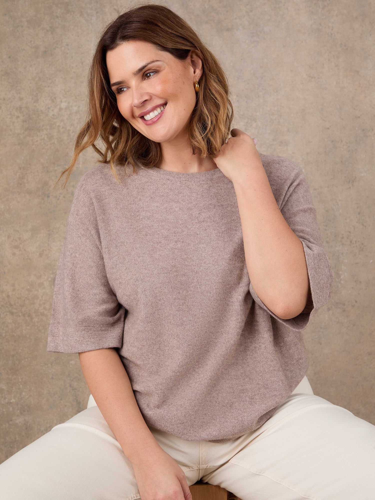Crafted for everyday wear with an elevated touch, this short-sleeve top is finished with a hint of cashmere for exceptional softness against the skin. The classic crew neckline and clean slip-on shape feel easy yet considered, while ribbed trims add gentle structure. Lightweight and comfortable, it works beautifully layered or worn alone, pairing effortlessly with tailored trousers, denim or skirts for polished, everyday dressing.