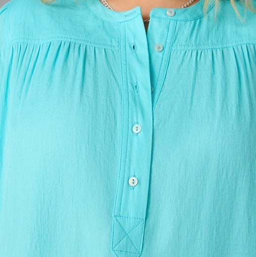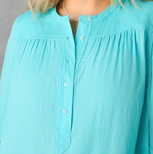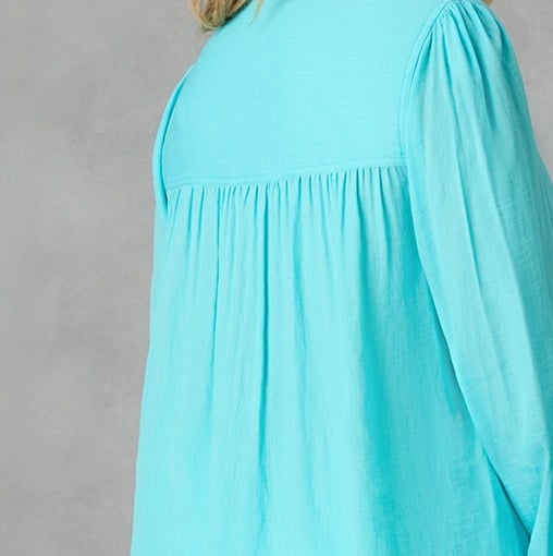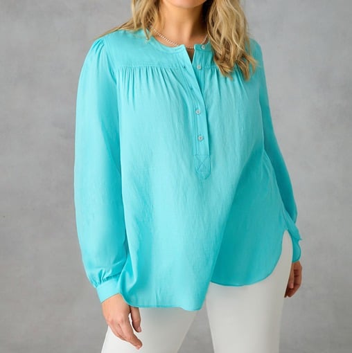 Beautiful colour and very flattering. Light and cool. Ordered a size smaller as it comes out bigger than expected. Had lots of positive comments wearing it. So nice to find something I actually like to wear in my favourite colour, rather than settling for what’s available in plus sizes